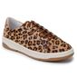 Tênis feminino em pelo natural com estampa animal print leopardo que combina tons quentes de caramelo, marrom e preto para um visual elegante e marcante. Com cadarços marrons, solado branco e detalhe caramelo na base, oferece conforto aliado a muito estilo. Ideal para compor produções modernas e despojadas, é a escolha perfeita para quem deseja um calçado autêntico, sofisticado e versátil para o dia a dia.